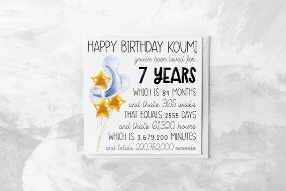 Personalised 7th Birthday Card 7 Year Old Balloon Card Happy 7th